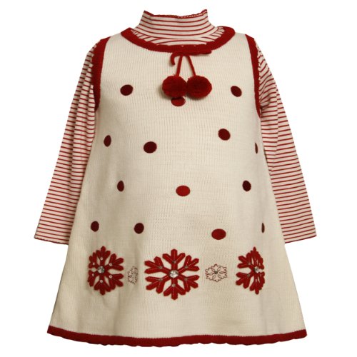 Size-3/6M BNJ-8099X 2-Piece IVORY RED SEQUIN BEADED SNOWFLAKE BORDER SWEATER-KNIT JUMPER Holiday Party Dress Set,X08099 Bonnie Jean Baby/NEWBORN Review