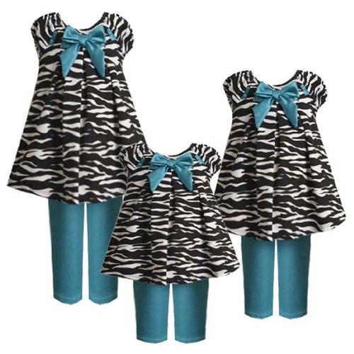 - JADE-BLUE & BLACK/WHITE ANIMAL PRINT KNIT dress/top & legging/pants set features BLACK & WHITE 'Zebra Animal Print' DRESS/TOP with JADE-BLUE PULL THRU SATIN RIBBON & BOW TRIM.