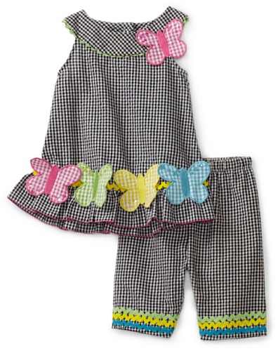 Bonnie Baby Baby-girls Infant Butterfly Appliques On Seersucker Capri Set, Black/White, 24 Months Review