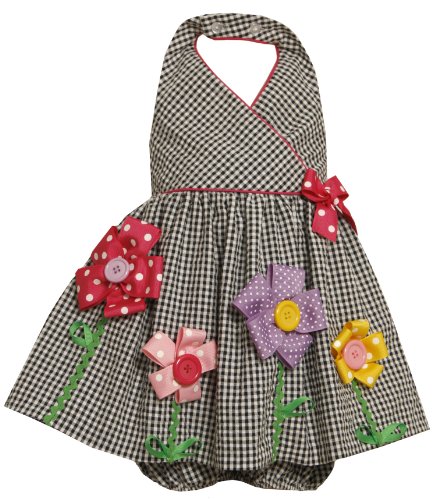 Bonnie Baby Baby-Girls Infant Seersucker Halter Dress with Grograin Flowers, Black/White, 18 Months Review